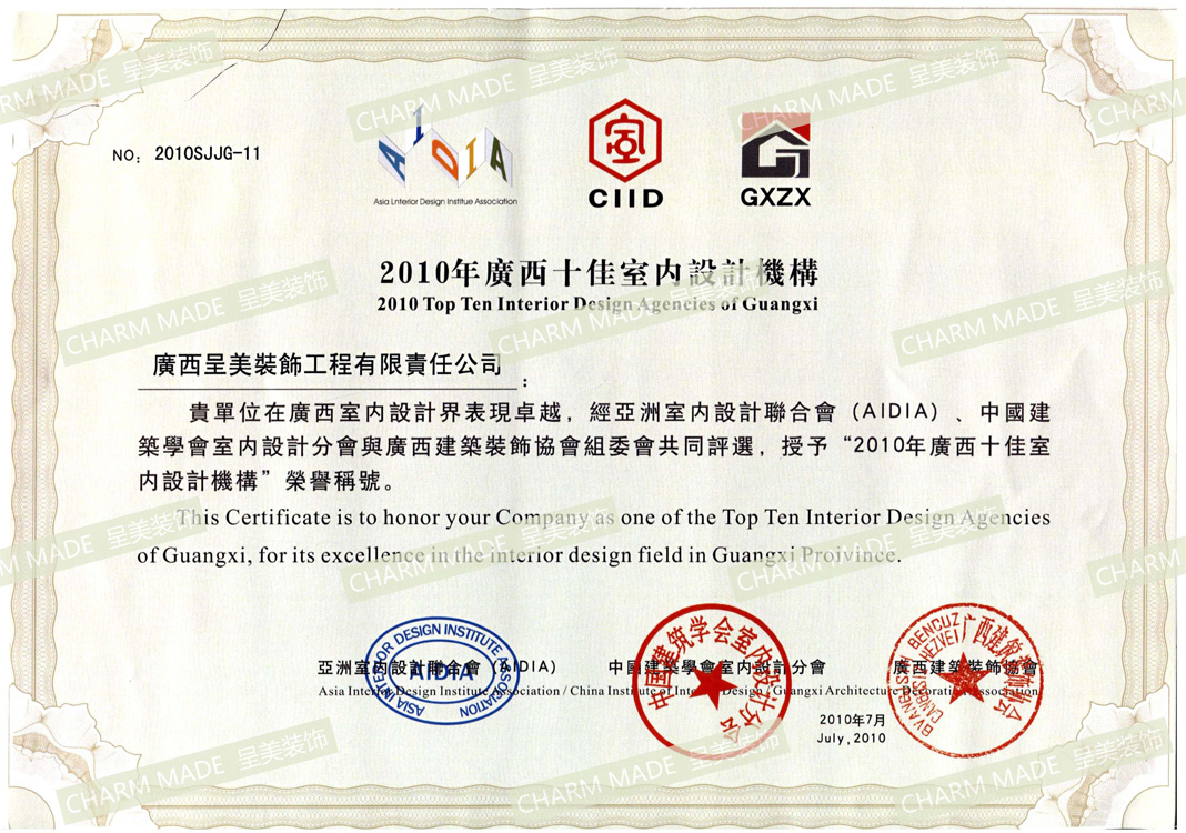 2010年 廣西十佳室內(nèi)設(shè)計(jì)機(jī)構(gòu)