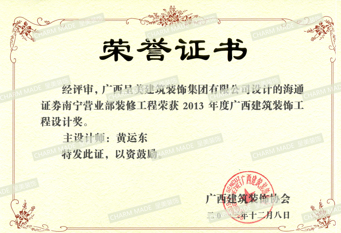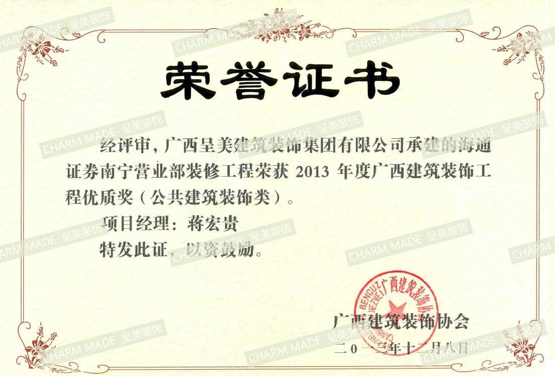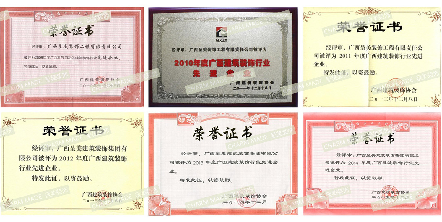 2009年~2014年 我司連續(xù)6年榮獲 廣西建筑裝飾行業(yè)先進(jìn)企業(yè)