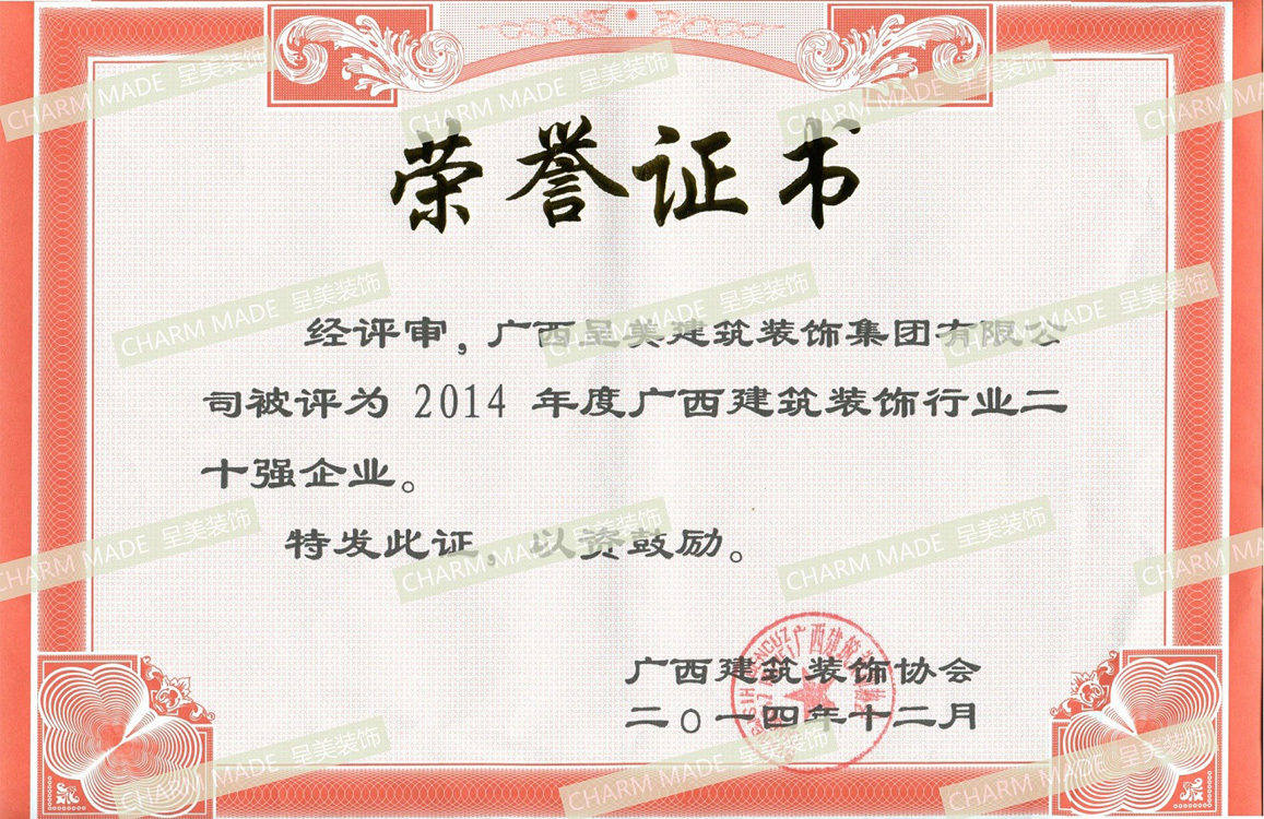 2014年度 廣西建筑裝飾行業(yè)二十強(qiáng)企業(yè)