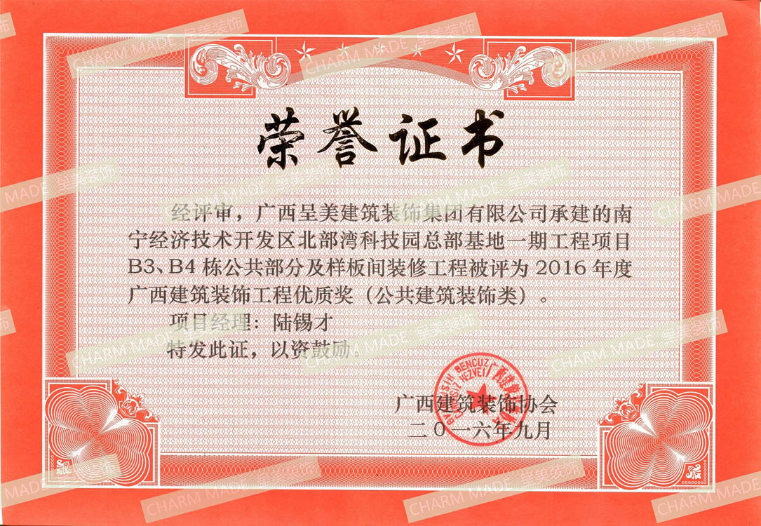 2016年度廣西建筑裝飾工程優(yōu)質(zhì)獎(jiǎng)(總部基地項(xiàng)目)